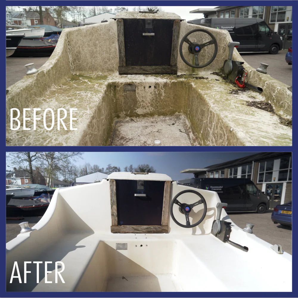 Denk aan reiniging aan reiniging van polyester, gelcoat, motorruimtes, kunststof onderdelen, rubber, dekkleden, uitlaatvlekken, gelakte en ongelakte voorwerpen. (Extreem) buitenvuil zoals kalk, groene aanslag, vet, olie en zwarte strepen verdwijnen zeer gemakkelijk en snel.