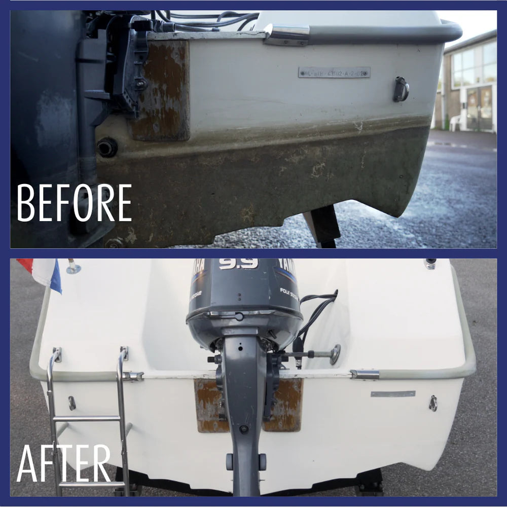 Romp- en Bodemreiniger is hét schoonmaakmiddel voor de onderkant van uw vaartuig. Het veroorzaakt vuil, aanslag, kalksteen, algen en andere aangroei. Ook kunt u het gebruiken voor de staartstukken van in- en buitenboordmotoren. De Romp- en Bodemreiniger zorgt ervoor dat de onderkant van het vaartuig weer volledig schoon wordt.